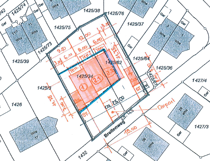 Die Baulücke in einem bestehenden, bereits vollständig erschlossenen Wohngebiet umfasst eine ganzheitliche Grundstücksgröße von 890 m², die für den Neubau Ihrer gewünschten Bebauung zur Verfügung steht. Art und Umfang der möglichen Bebauung sind vor Kauf direkt mit dem Bauamt abzustimmen und richtet sich nach dem Bebauungsplan sowie der umliegenden Nachbarschaftsbebauung. Mögliche Ideen wären hierzu ein großzügiges Doppelhaus mit 2 Doppelhaushälften oder 4 einzelnen Eigentumswohnungen oder alternativ 3 Reihenhäuser.