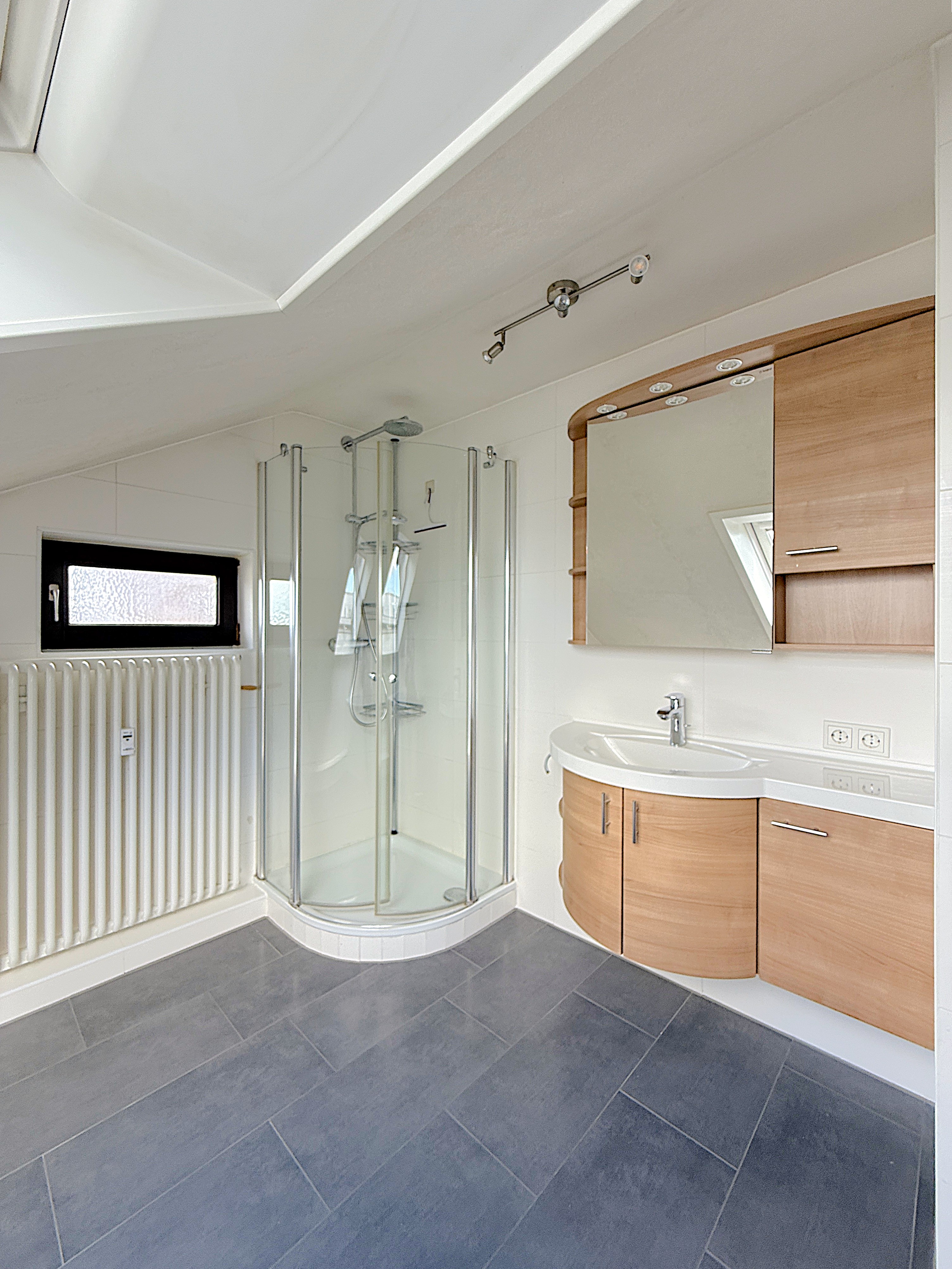- Ausstattung des Bades Dusche Fenster Badewanne