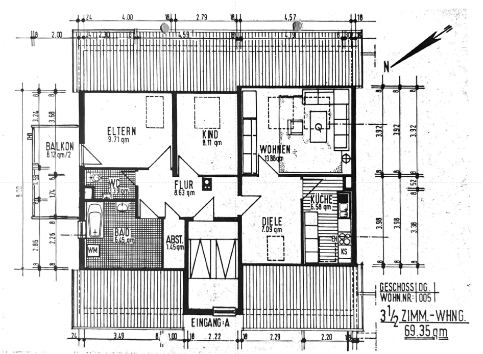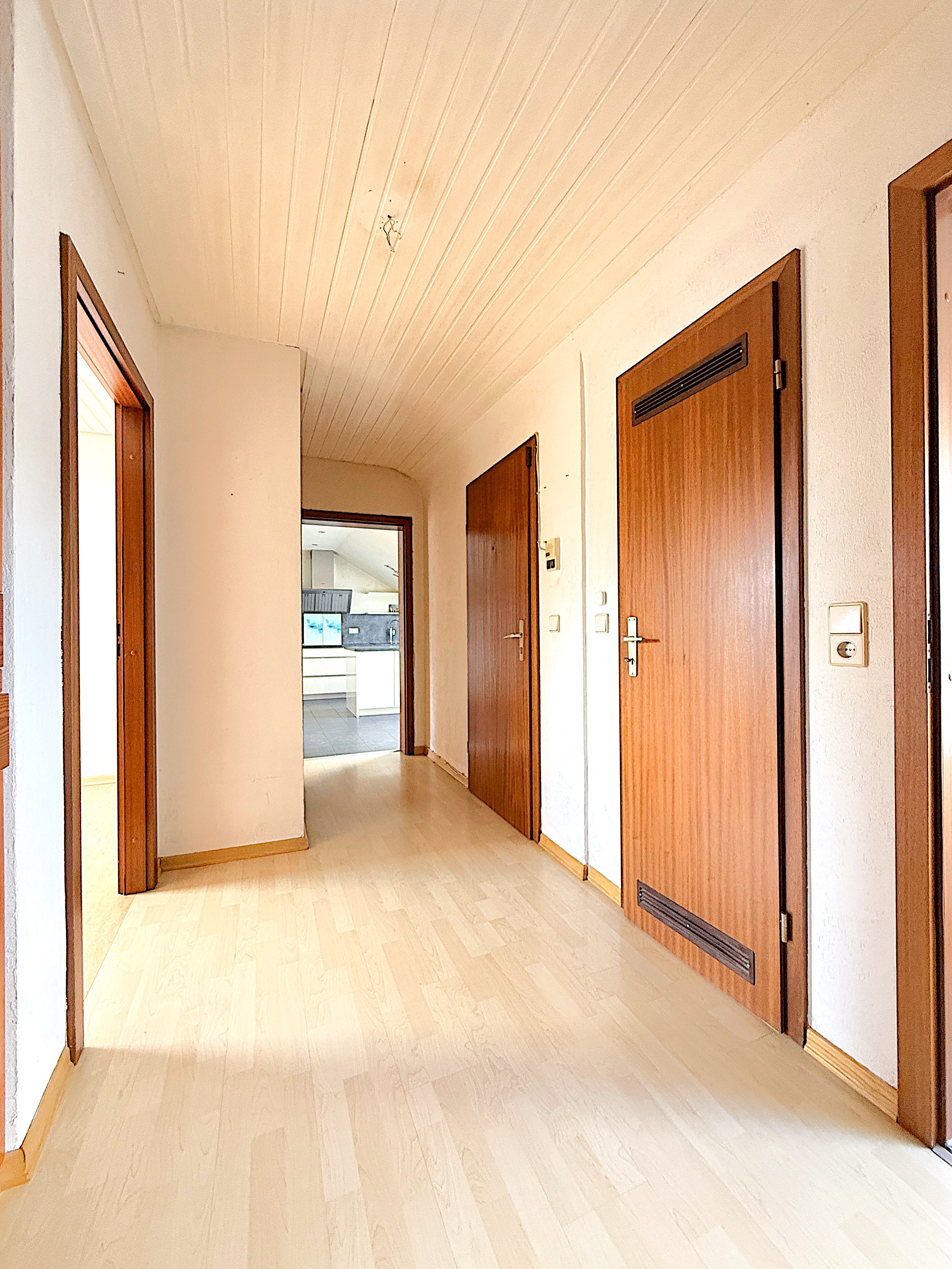 Die verkaufsrelevante 3,5 Dachgeschosswohnung ist eingebettet in das erste Obergeschoss eines gepflegten Sechsfamilienhauses aus dem Errichtungsjahr 1983 und erstreckt sich mit ca. 70 m² Wohnfläche über 3,5 Zimmer, Küche, Badezimmer, Abstellraum, Flur und gesonderter Toilette.