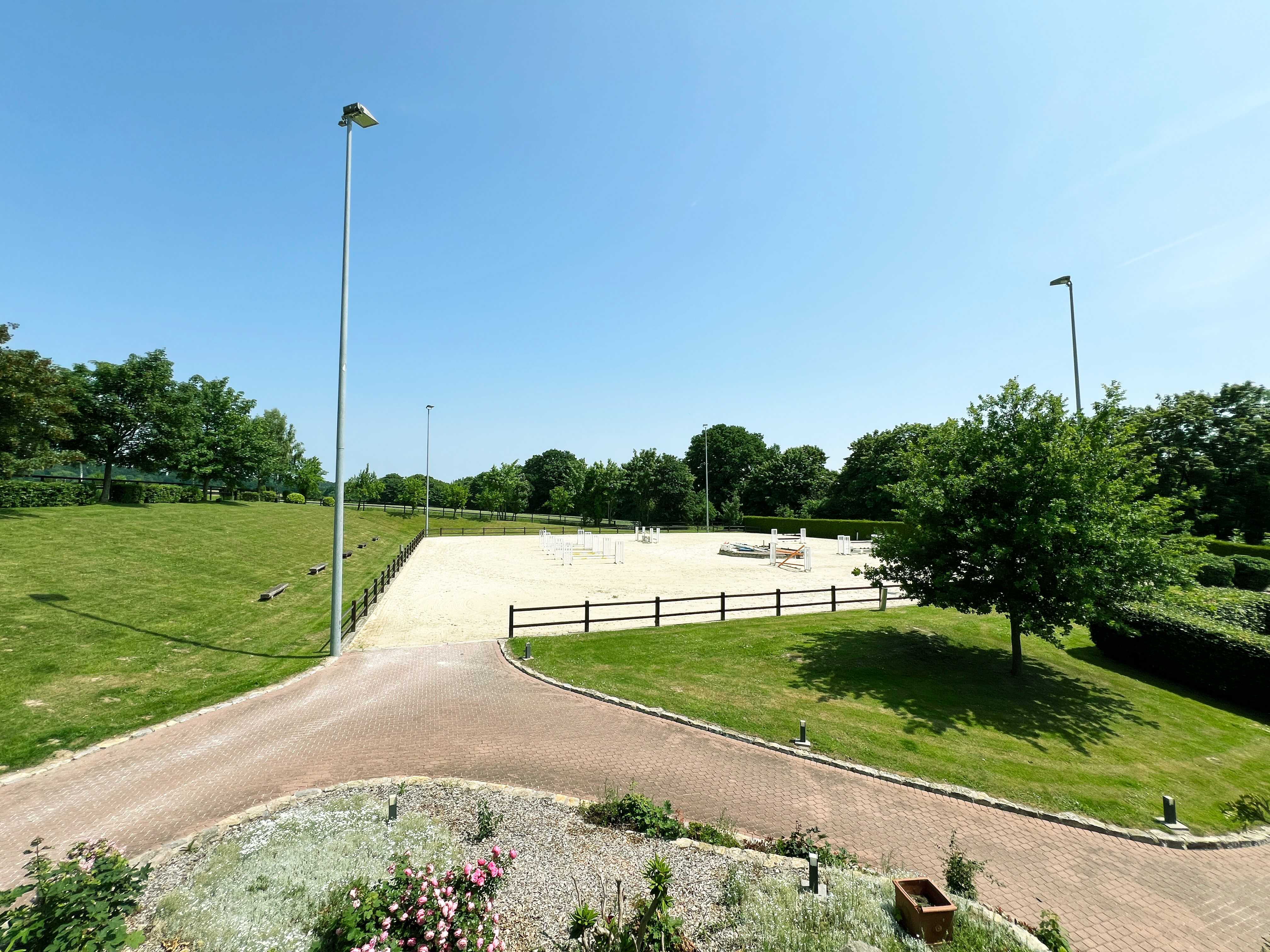 – Wettbewerbsfähiger Turnierreitplatz auf Rasen mit Flutlicht und Richterturm / Meldestelle (angrenzender Abreitplatz; Umbaumöglichkeit in Ebbe-Flut-Platz)