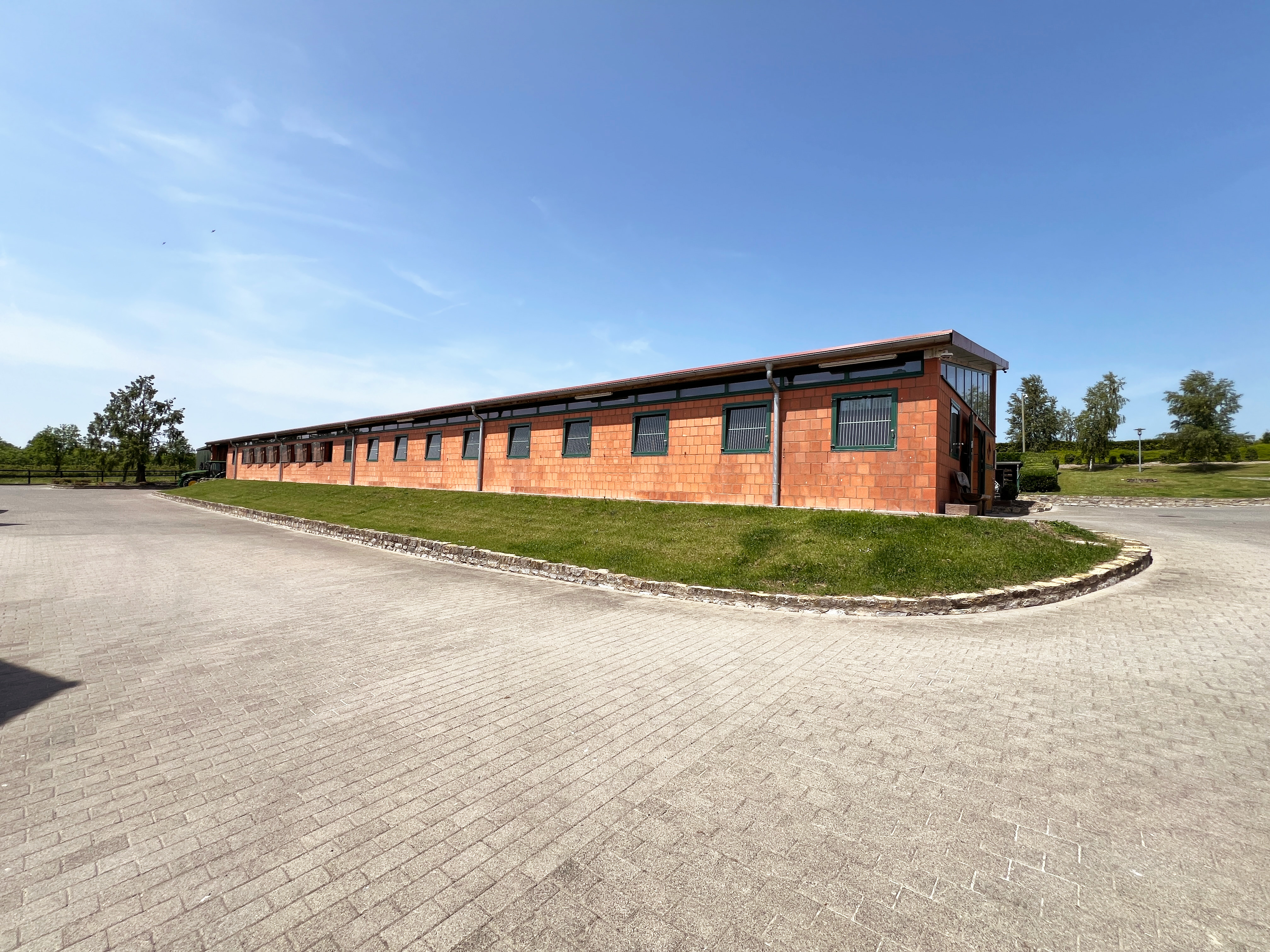 – Neuer Stuten-/Weidestall mit Platz für 9–12 Pferde; Paddocks mit Pflaster, Weidezugang; offenstallgeeignet, einfach entmistbar)