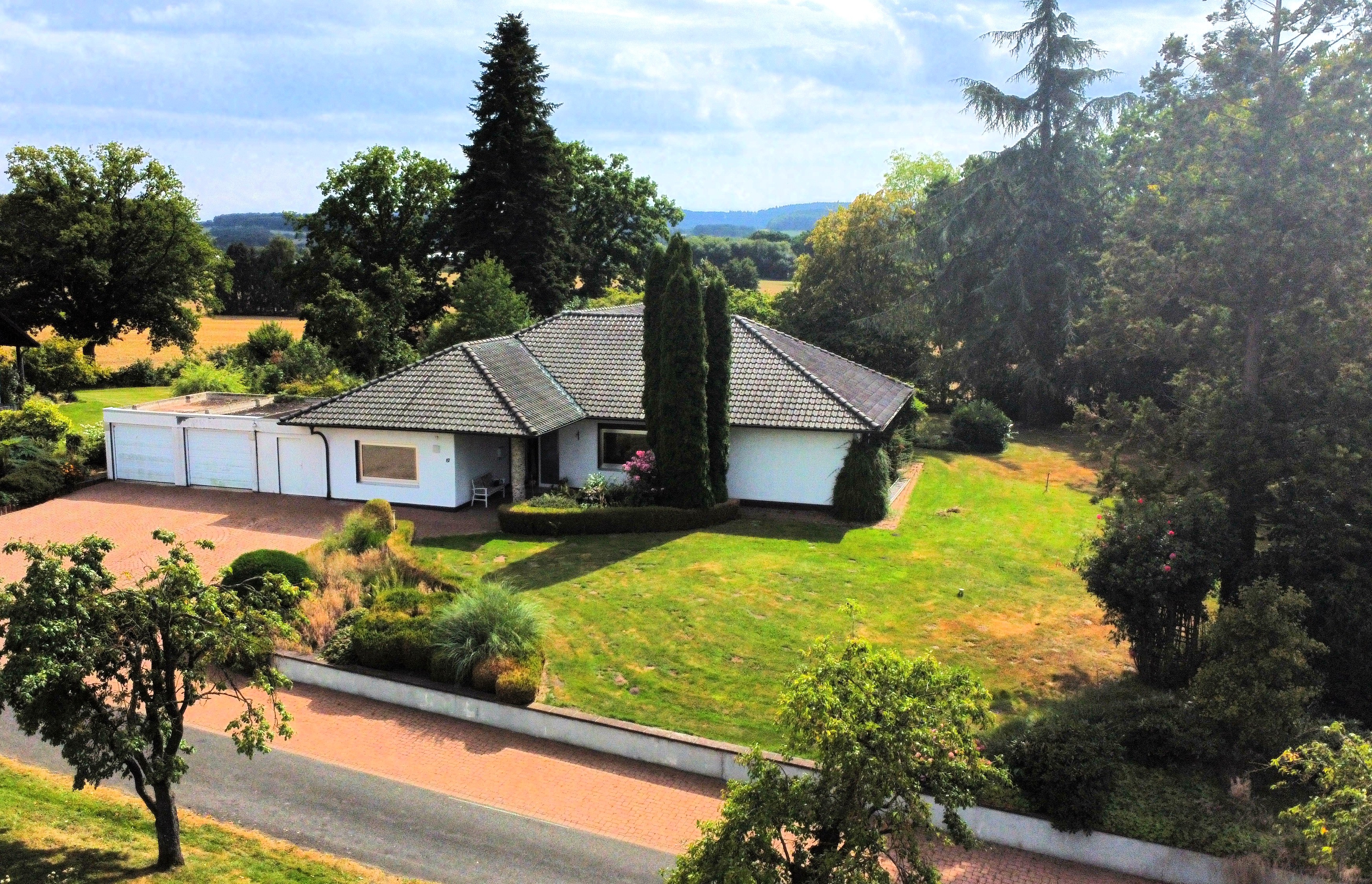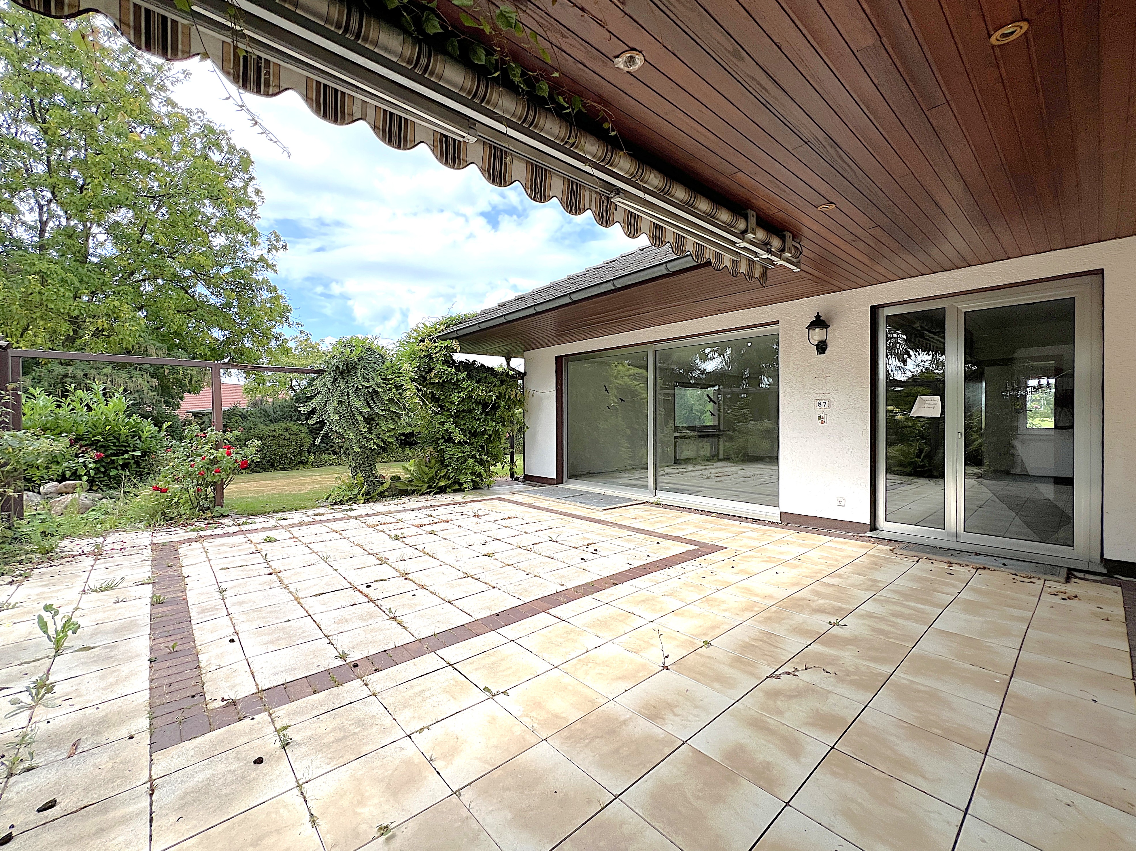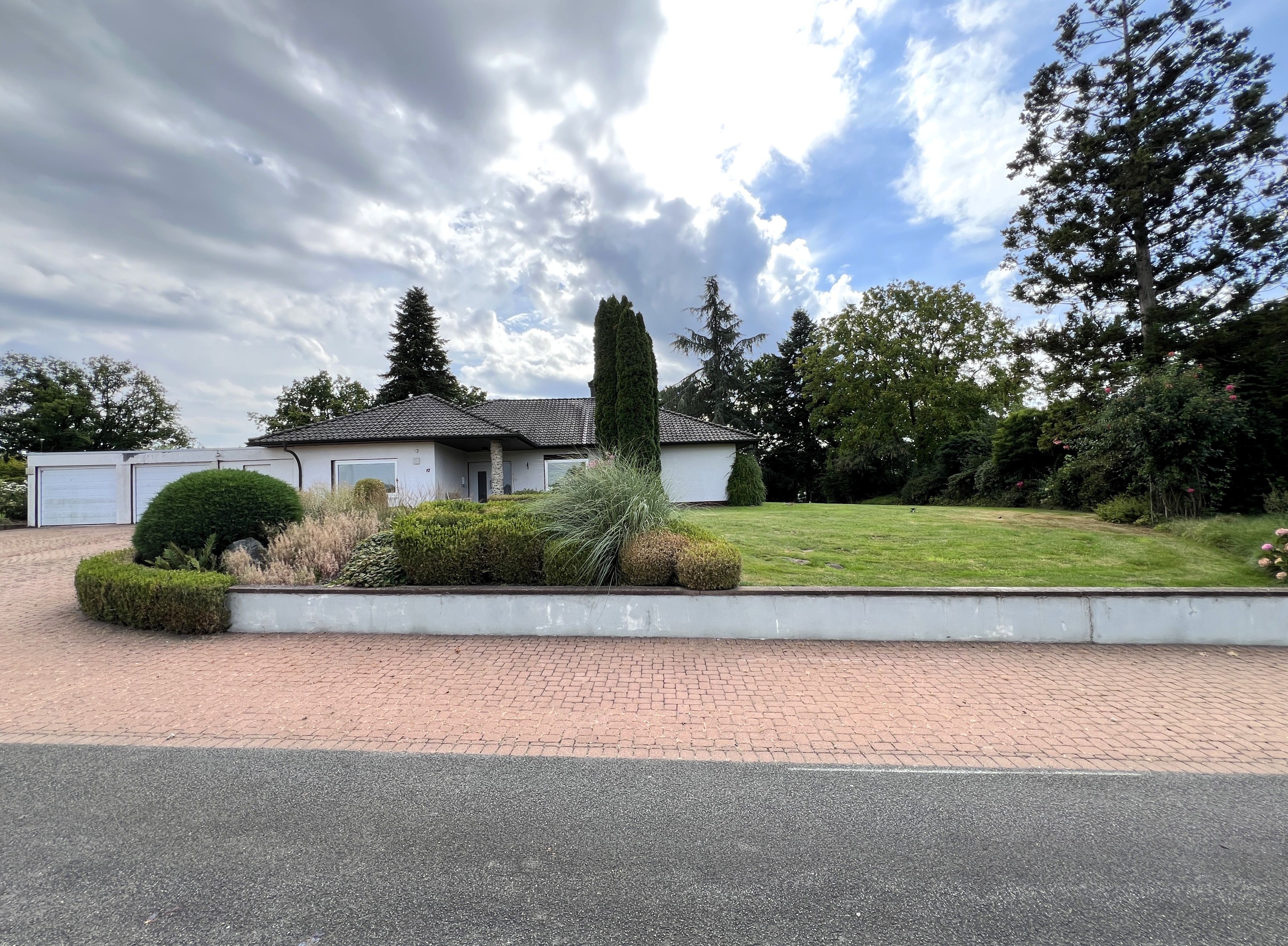 In überzeugender Lage präsentiert sich dieser dieser im Jahr 1971 in massiver Bauweise errichtete eingeschossige Bungalow auf einem neu zu vermessenden Grundstück von etwa 2.613 m². Mit einer vollkommen stufenlos begehbaren Wohnfläche von ca. 187 m² bietet Ihnen Ihr neues Zuhause mit bis zu 5-6 Zimmern ohne störende Schrägen, Badezimmer, Küche, Gäste WC, Teilkeller mit Hobbyraum und Doppelgarage viel kreativen Gestaltungsfreiraum und flexible Nutzungsmöglichkeiten. Um Ihre Privatsphäre zu sichern, ist das herrschaftliche Anwesen nur über einen Privatweg zugänglich, sodass lästiger Durchgangsverkehr entfällt.