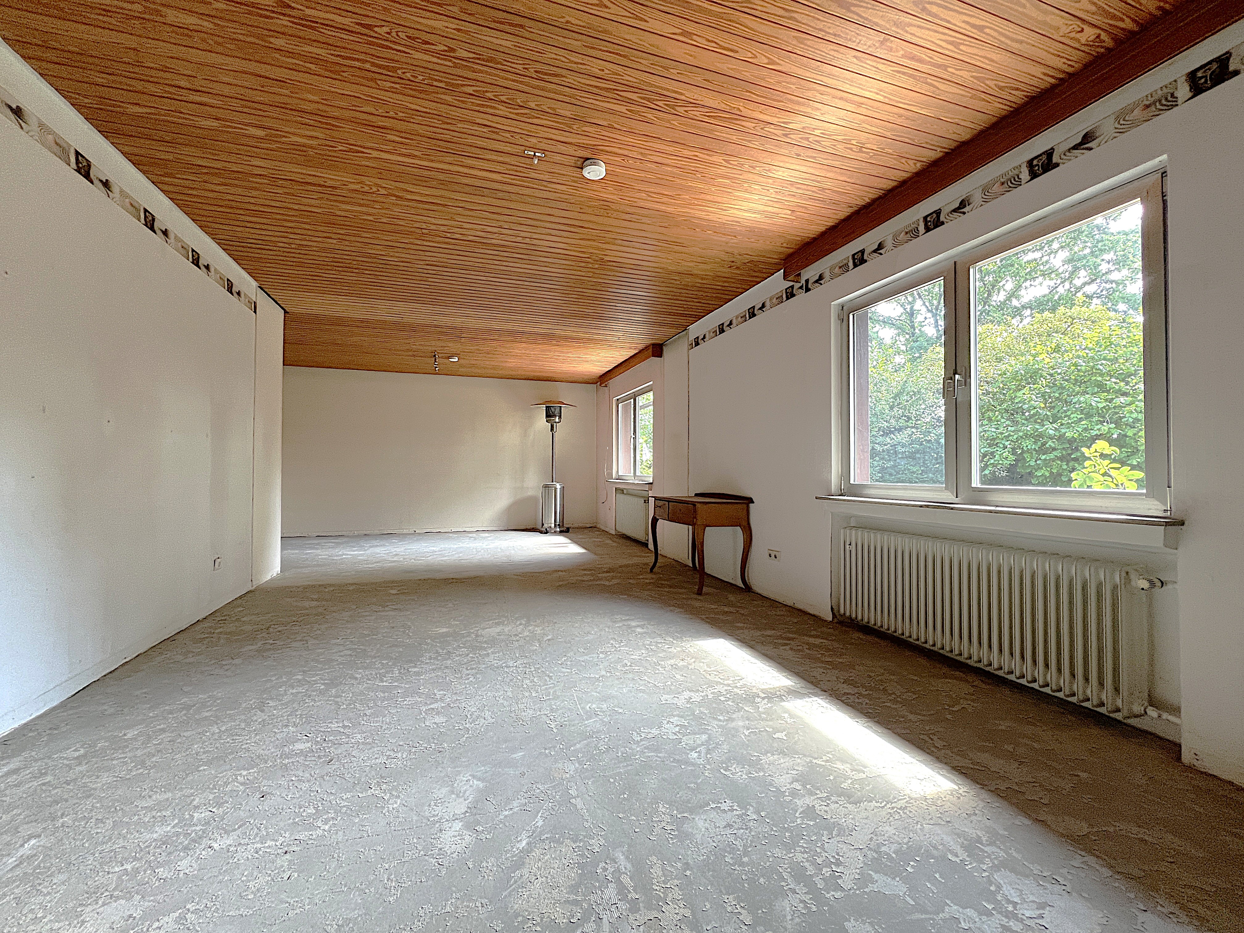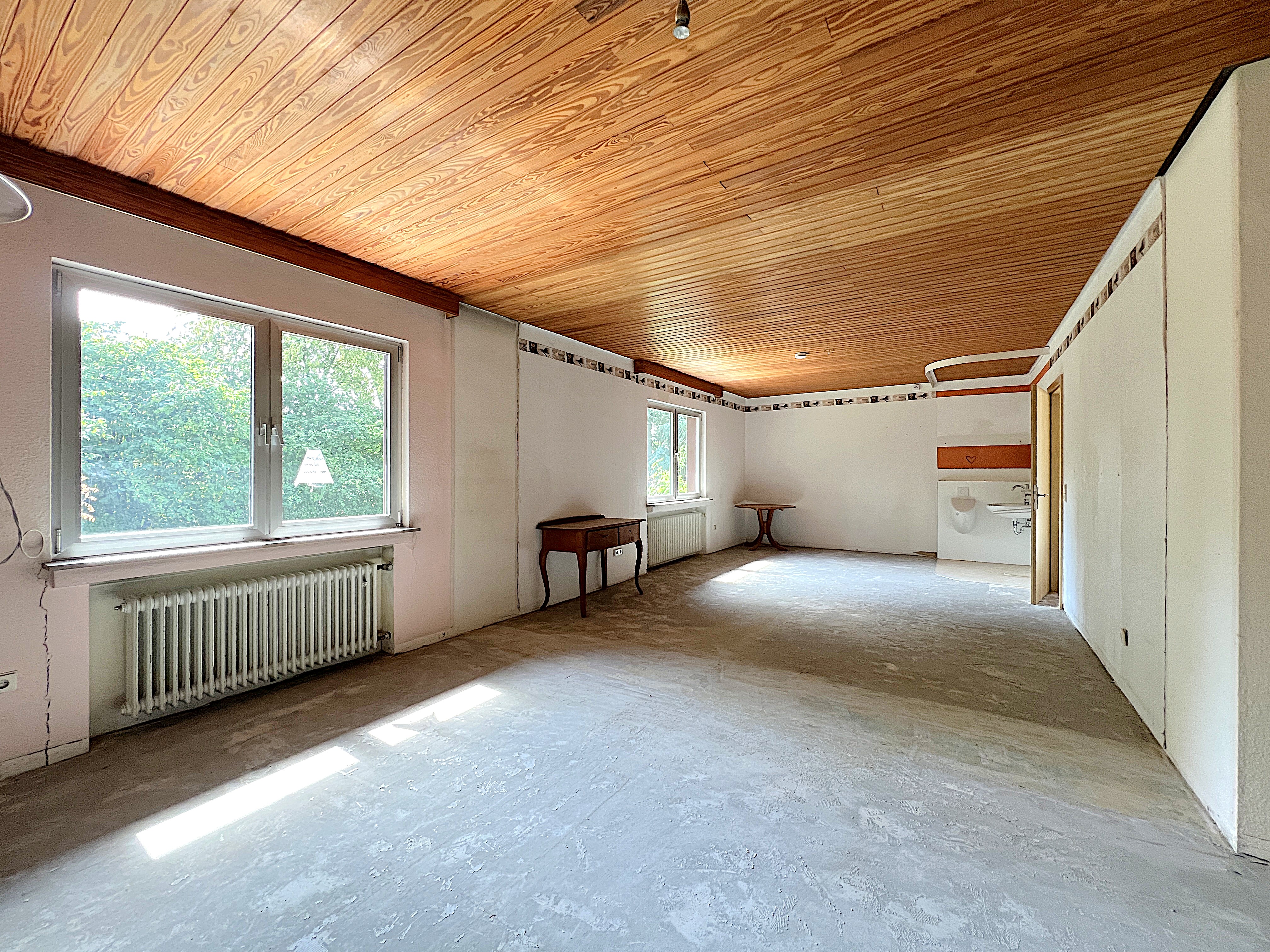 Der herrschaftliche Bungalow eignet sich besonders für anspruchsvolle Paare, kleine und große Familien sowie Senioren, die langfristig ein neues Zuhause suchen, dessen Wohnfläche ausschließlich stufenlos und ebenerdig begehbar ist sowie Ruhe, repräsentativen Wohnstil mit großzügige Wohn-, Nutz- und Grundstücksflächen vereint. Die Immobilie befindet sich teilweise in einem sanierungsbedürftigen, bereits eingepreisten Zustand, wobei hierzu bereits zeitaufwendige Vorarbeiten wie z. B. Demontage der Wandverkleidungen und Teppichböden vom Verkäufer übernommen worden sind. Die Immobilie kann nach Absprache zeitnah zur sofortigen Eigennutzung übergeben werden.
