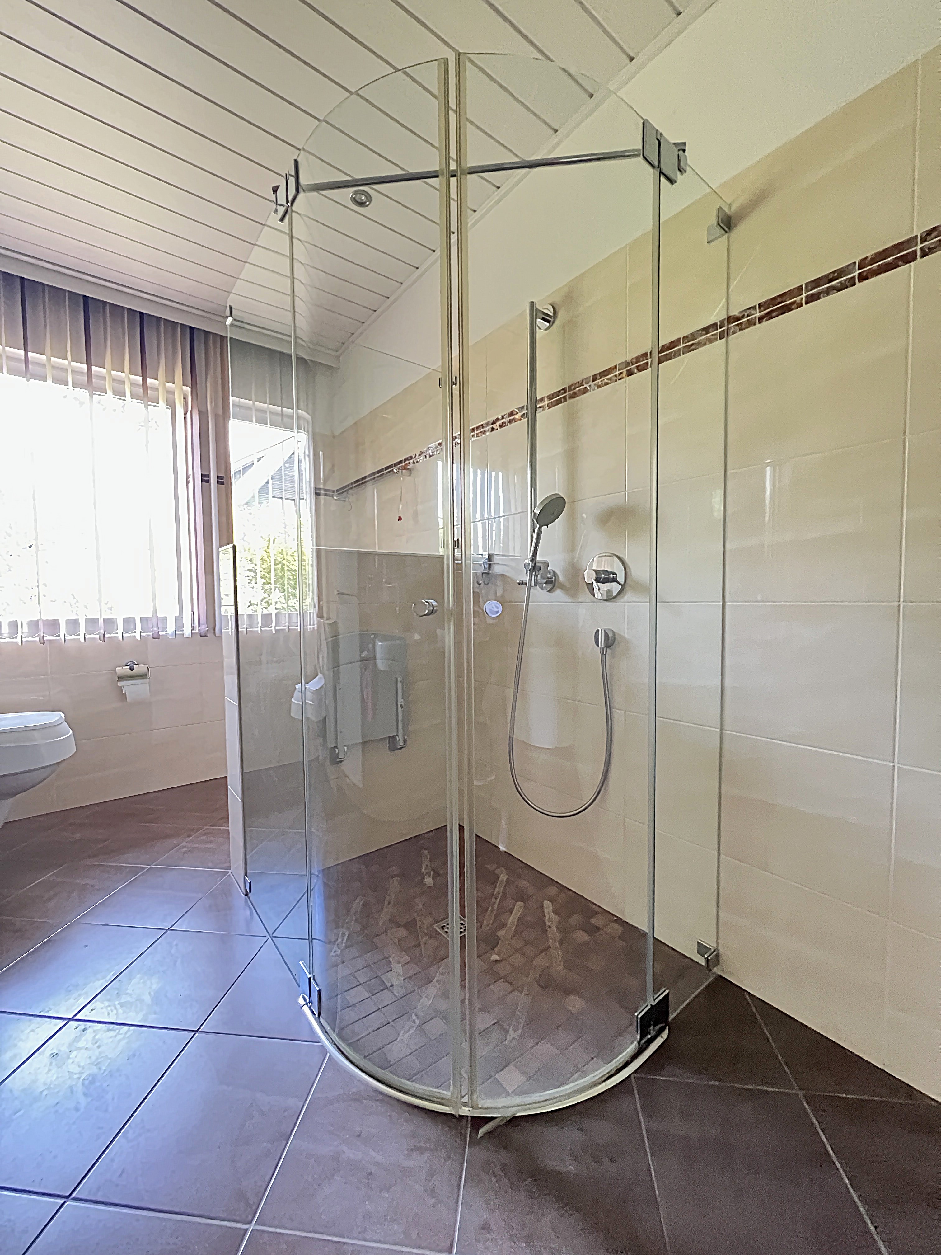 - Ausstattung des Bades Dusche Fenster