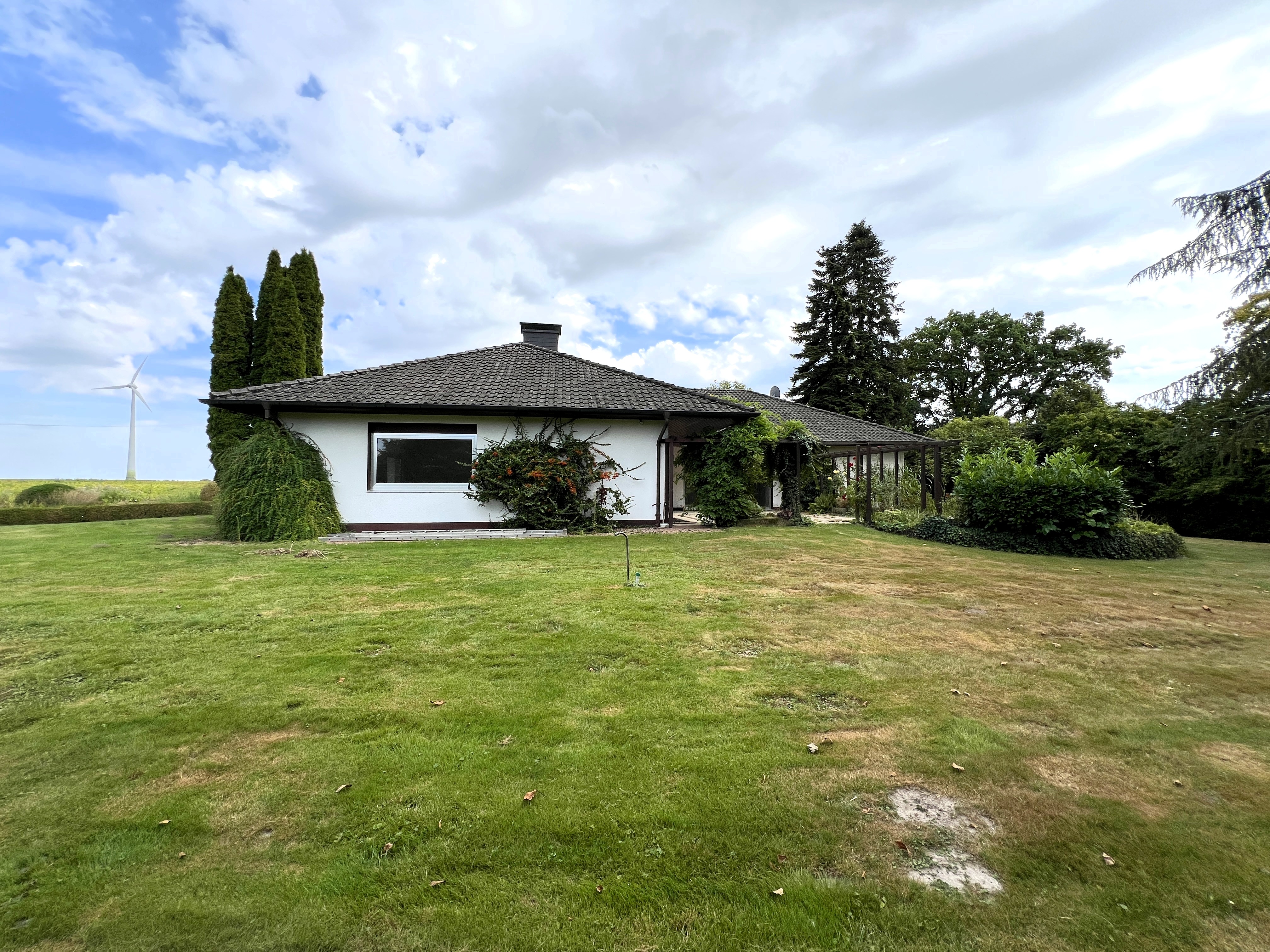 Sie suchen einen stufenlos begehbaren Bungalow, der die gesamten Wohnfläche auf einer Ebene aufweist, so dass Sie (im Alter) für alle Eventualitäten gerüstet sind? Zudem haben Sie das direkte Stadtleben satt und wollen daher zwar infrastrukturell gut eingebunden, aber dennoch dezentral in dünnbesiedelter Lage auf einem weitläufigen, gering einsehbaren Grundstück leben? Zudem wünschen Sie sich keine Immobilie von der Stange, sondern sind auf der Suche nach einem besonderen Zuhause mit Zugang über einen Privatweg?