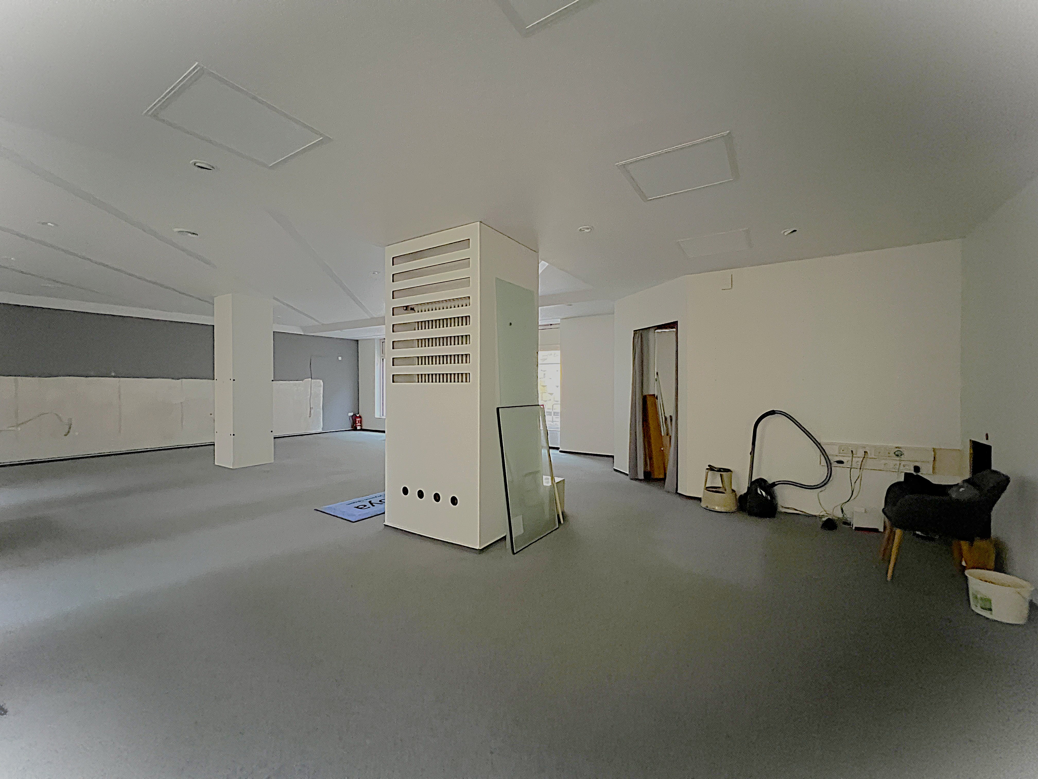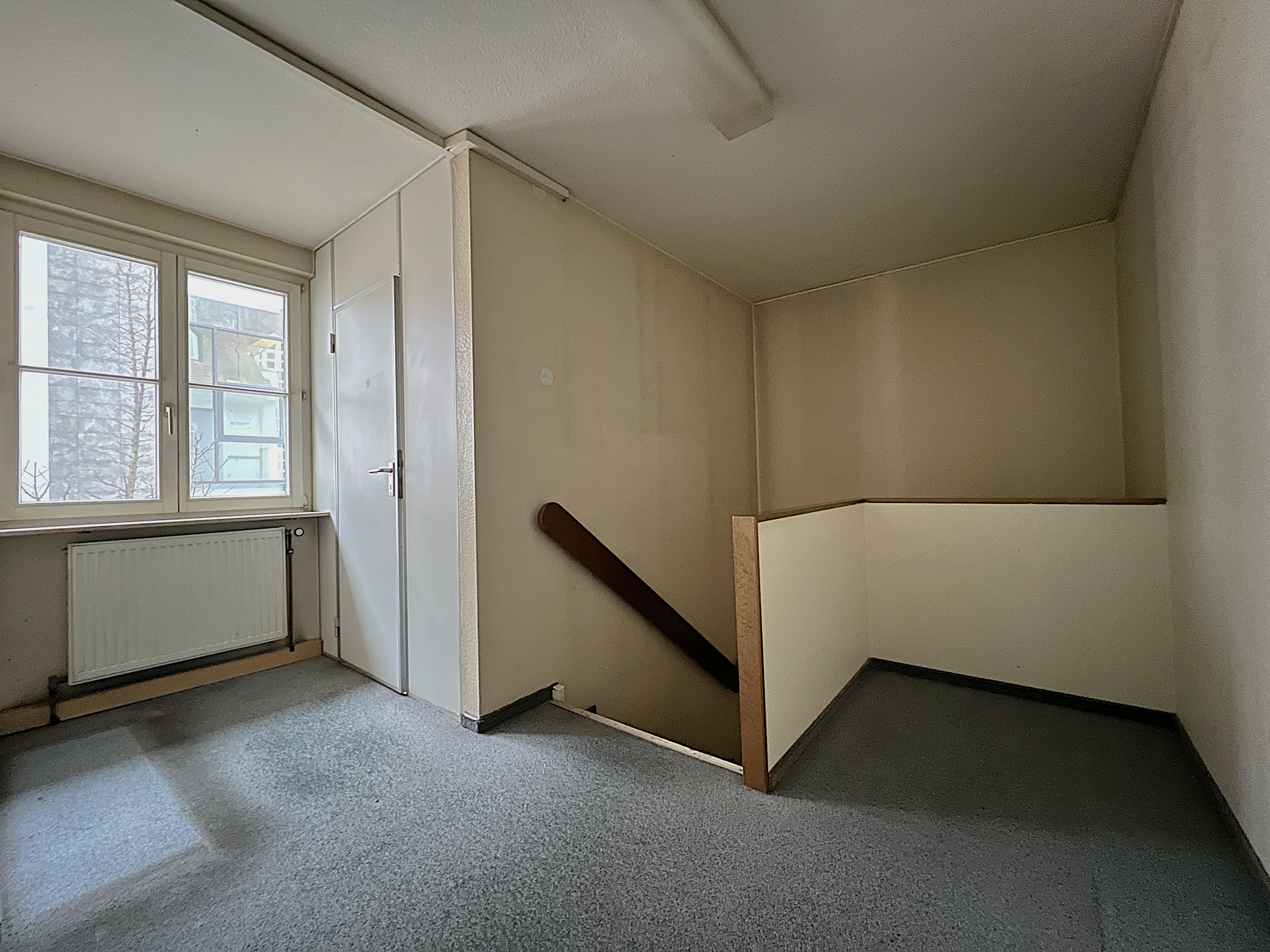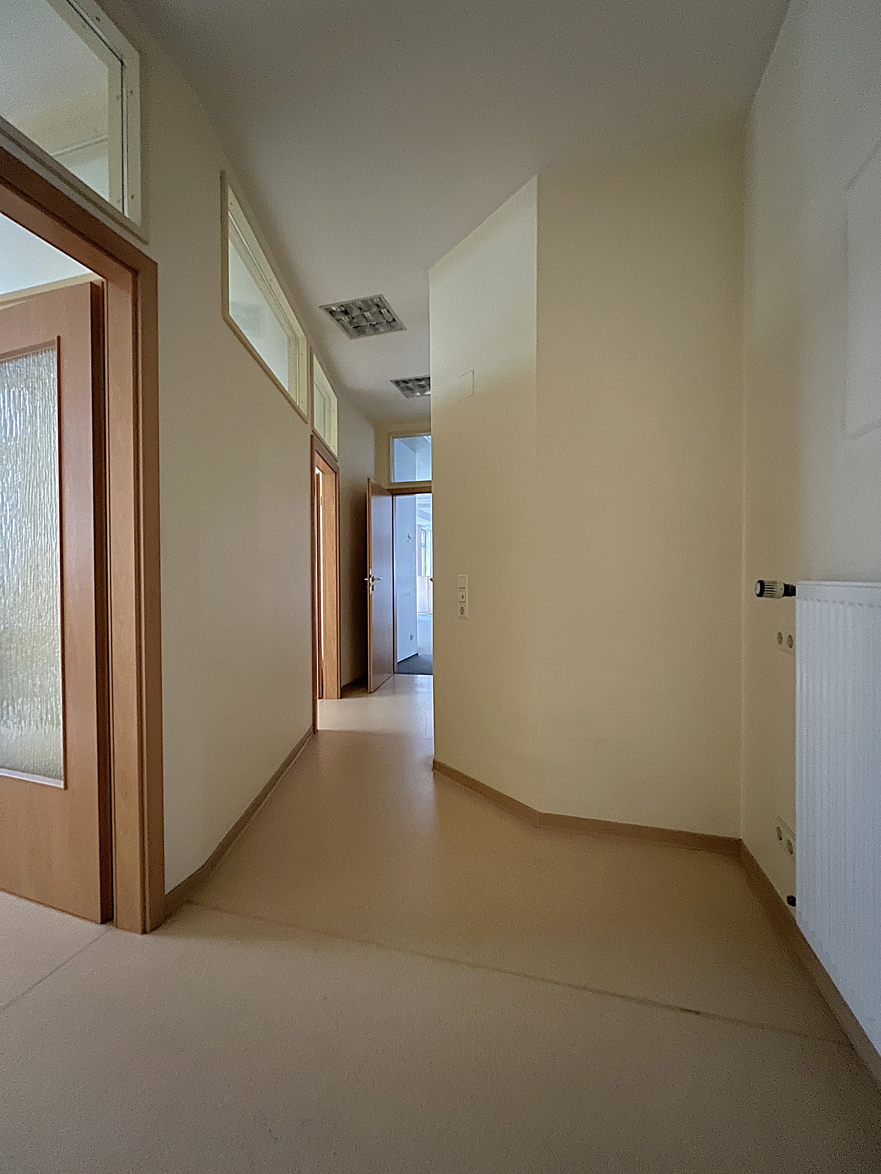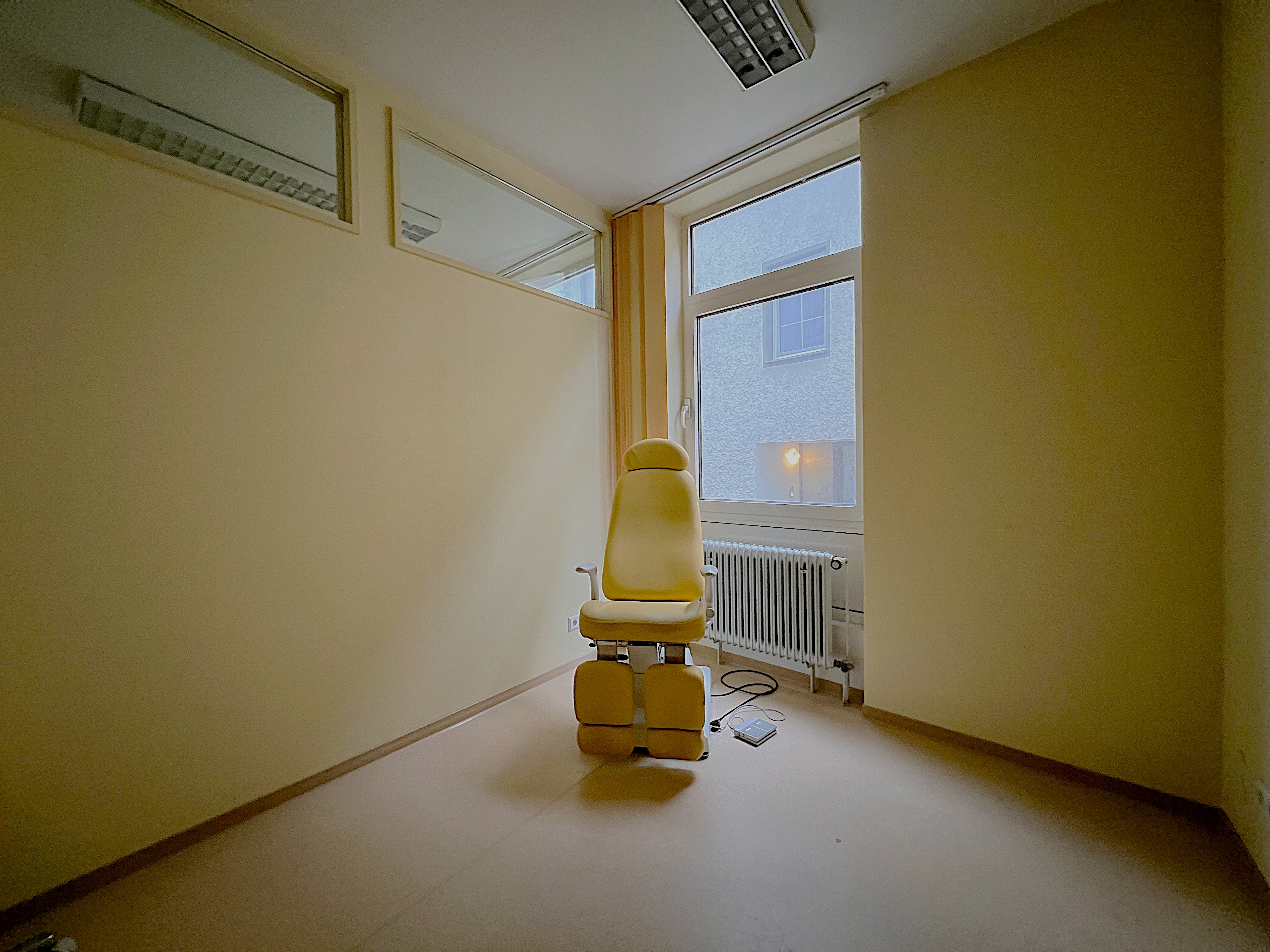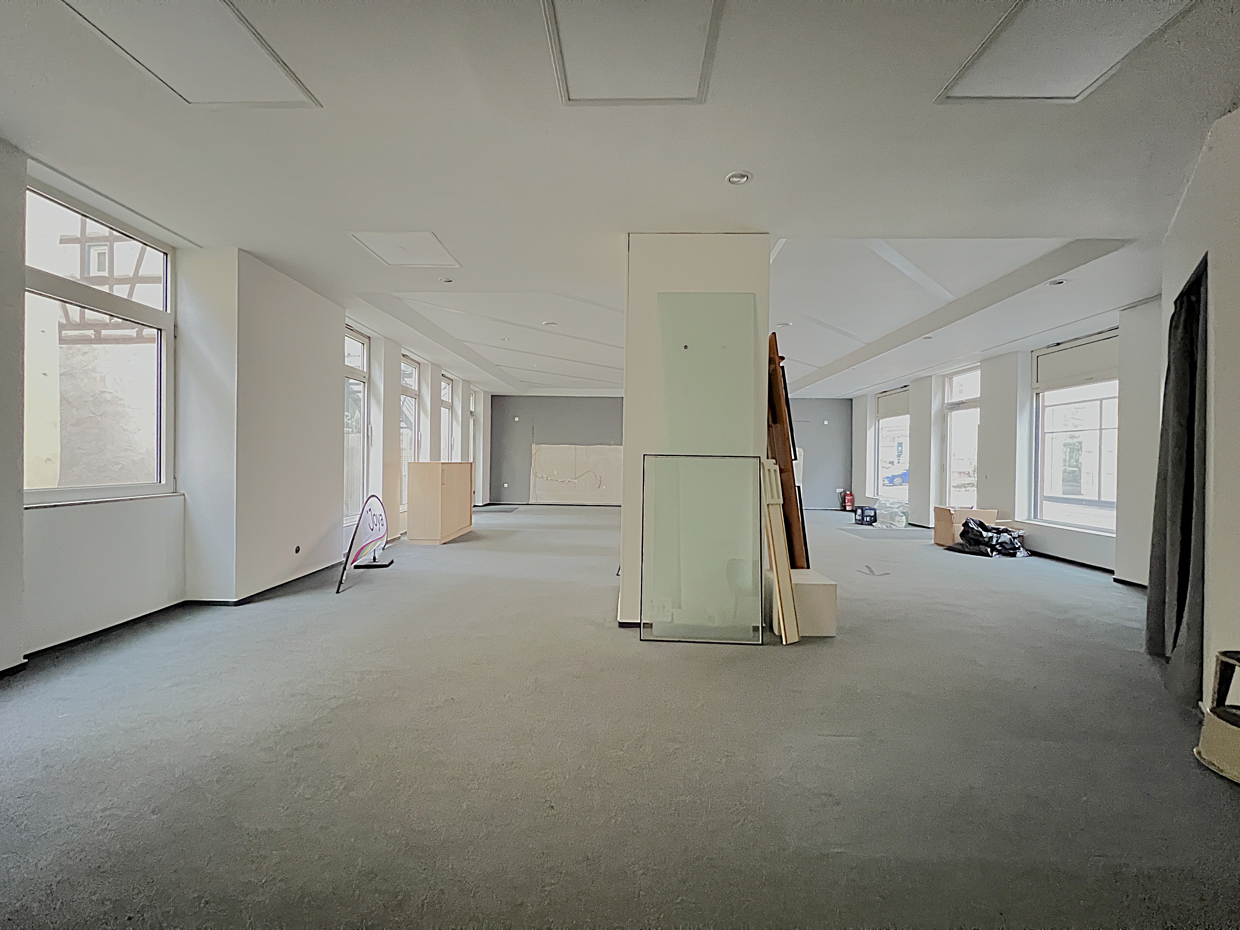 Der ebenerdig begehbare Haupteingang mündet direkt in Ihre aktuell raumoffen gestaltete Verkaufsfläche von ca. 120 m². Drei zusätzliche Behandlungs-, Beratungs- oder Büroräume sind darüber hinaus im hinteren Bereich des Erdgeschosses hiervon räumlich in sich geschlossen über Leichtbauweise abgeteilt. Hier befindet sich auch das Kunden WC sowie ein optional nutzbarer Zugang zum Treppenhaus des Wohn- und Geschäftshauses.