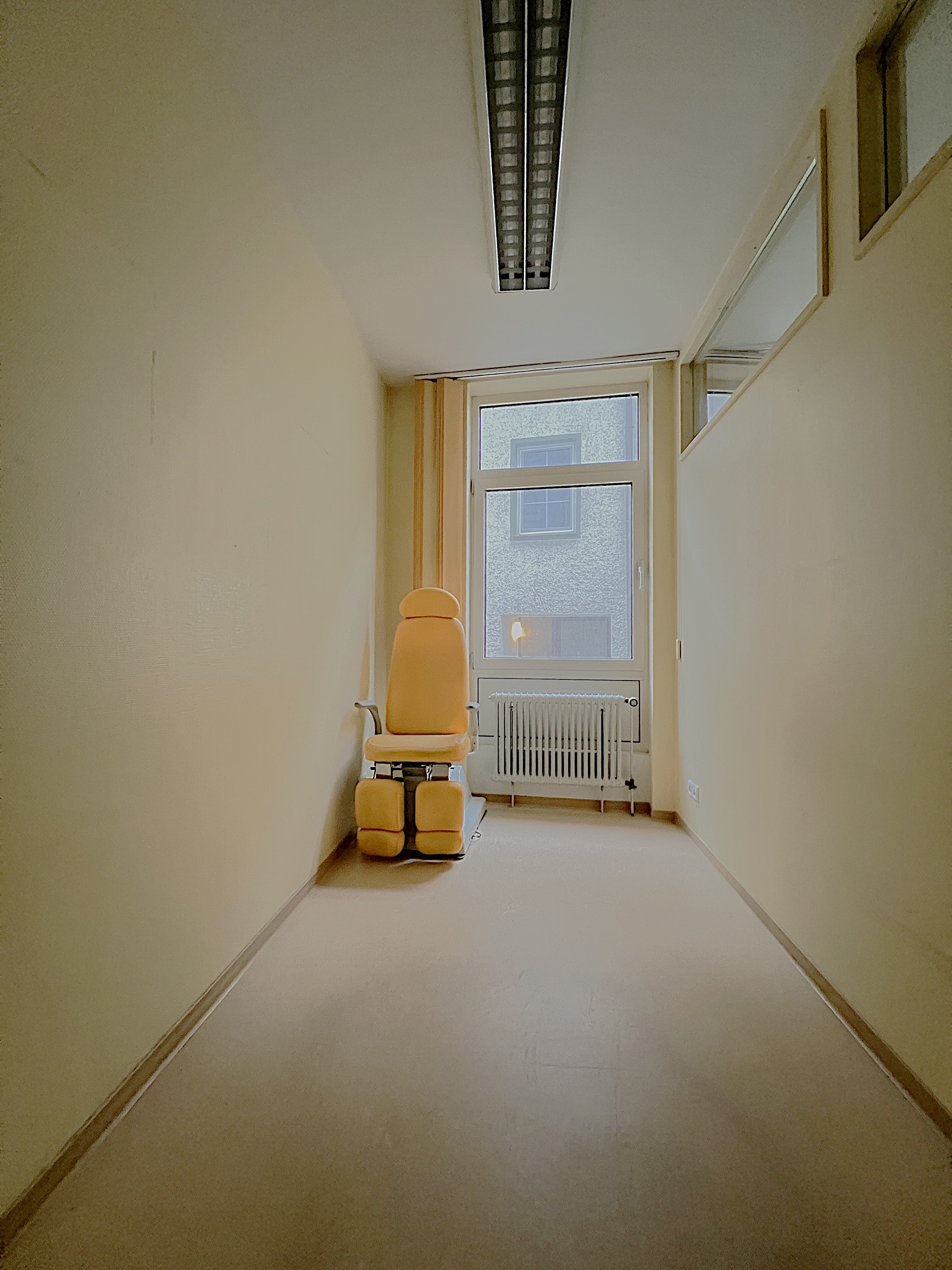 Der ebenerdig begehbare Haupteingang mündet direkt in Ihre aktuell raumoffen gestaltete Verkaufsfläche von ca. 120 m². Drei zusätzliche Behandlungs-, Beratungs- oder Büroräume sind darüber hinaus im hinteren Bereich des Erdgeschosses hiervon räumlich in sich geschlossen über Leichtbauweise abgeteilt. Hier befindet sich auch das Kunden WC sowie ein optional nutzbarer Zugang zum Treppenhaus des Wohn- und Geschäftshauses.